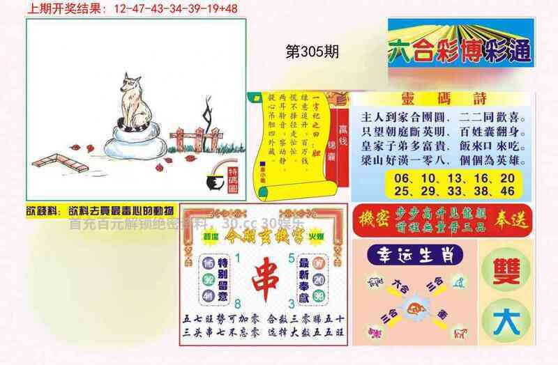306期:平特一肖【狗狗狗】开:牛17